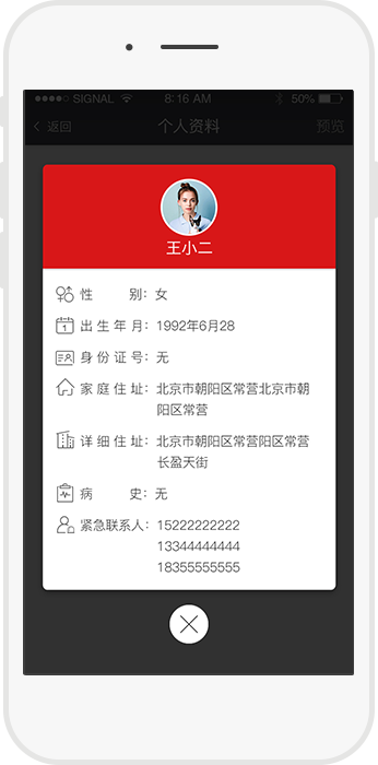 完善个人资料,当发生危急情况时,第一时间查阅求救人的健康档案。