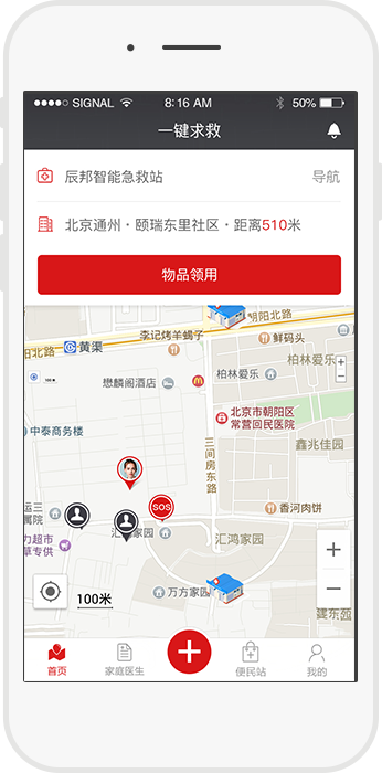 危急时刻,一键求救,自动呼叫家人、邻居及周边志愿者,第一时间为求救者的生命保驾护航。